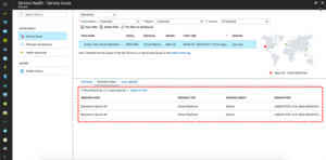 • The service issues view shows any ongoing issues in Azure services that are impacting your resources. Quickly understand when the issue began, and what services and regions are impacted.